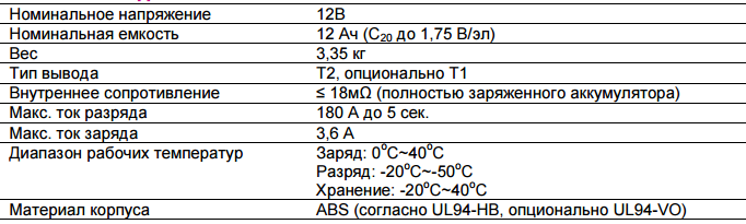 Номинальное напряжение АБ, В | 12 |