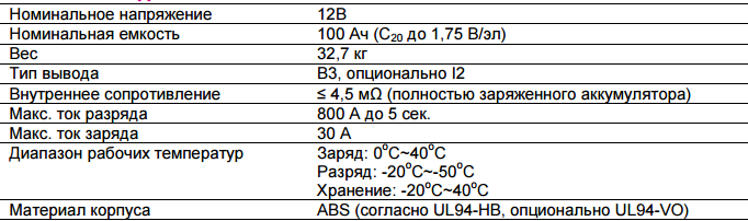 Номинальное напряжение АБ, В | 12 |