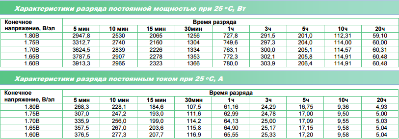 Разрядные характеристики: