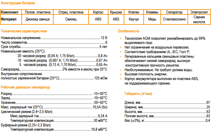Ёмкость АКБ (С20), Ач | 0.8 |