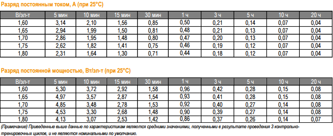 Разряд постоянной мощностью, Вт/эл-т (при 25°С)