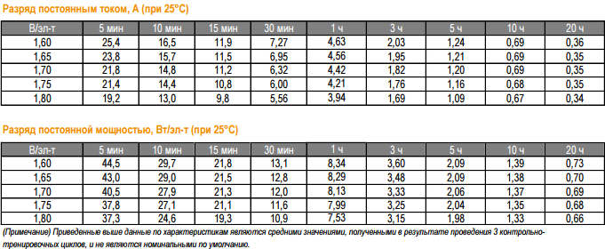 Разряд постоянной мощностью, Вт/эл-т (при 25°С)