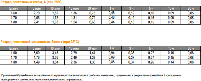 Разряд постоянной мощностью, Вт/эл-т (при 25°С)