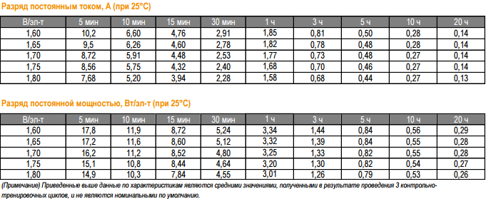 Разряд постоянной мощностью, Вт/эл-т (при 25°С)