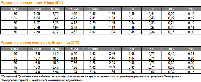 Разряд постоянной мощностью, Вт/эл-т (при 25°С)