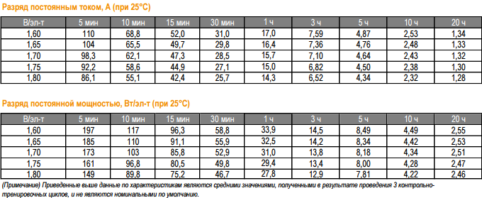 Разряд постоянной мощностью, Вт/эл-т (при 25°С)