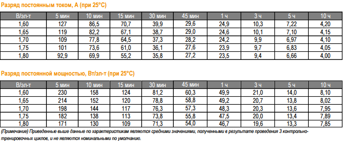 Разряд постоянной мощностью, Вт/эл-т (при 25°С)