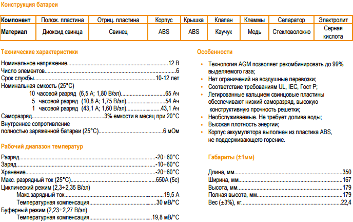 абсорбированный в стекловолоконном сепараторе) и оснащены VRLA