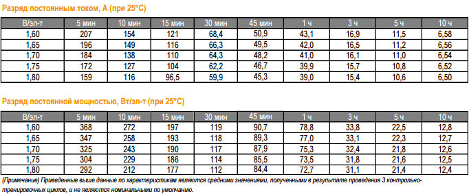 Разряд постоянной мощностью, Вт/эл-т (при 25°С)