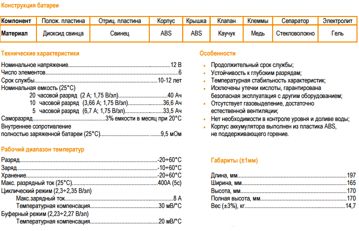Диапазон температуры разряда, ℃ | от -20 до 60 |