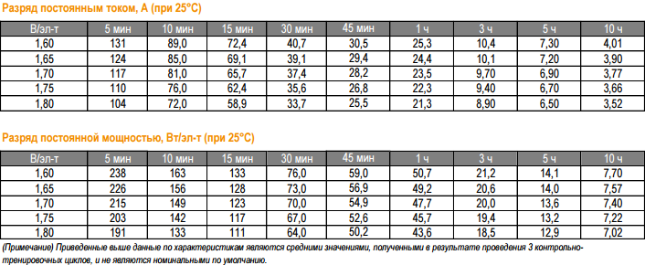 Разряд постоянной мощностью, Вт/эл-т (при 25°С)