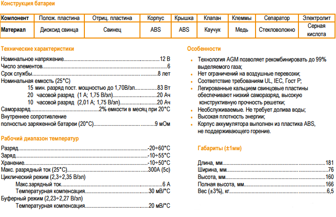 | Материал | Диоксид свинца | Свинец | ABS | ABS | Каучук | Медь | Стекловолокно | Серная кислота |
