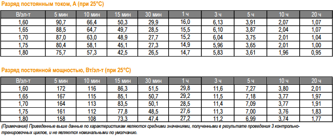 Разряд постоянной мощностью, Вт/эл-т (при 25°С)