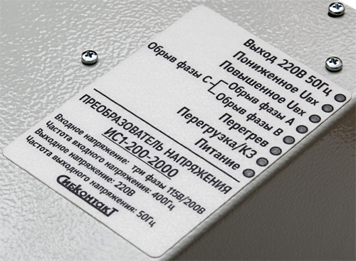 ИС1-200-2000 может работать со всеми видами нагрузок – активной, индуктивной, нелинейно-емкостной, в т. ч. с трансформаторами, двигателями переменного тока, а также бытовыми электроприборами.